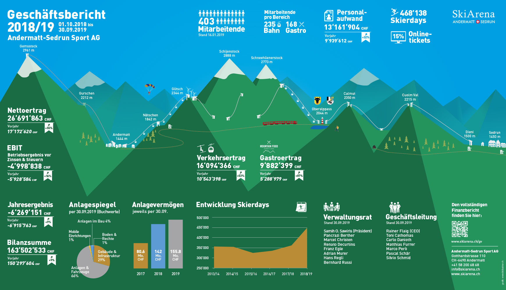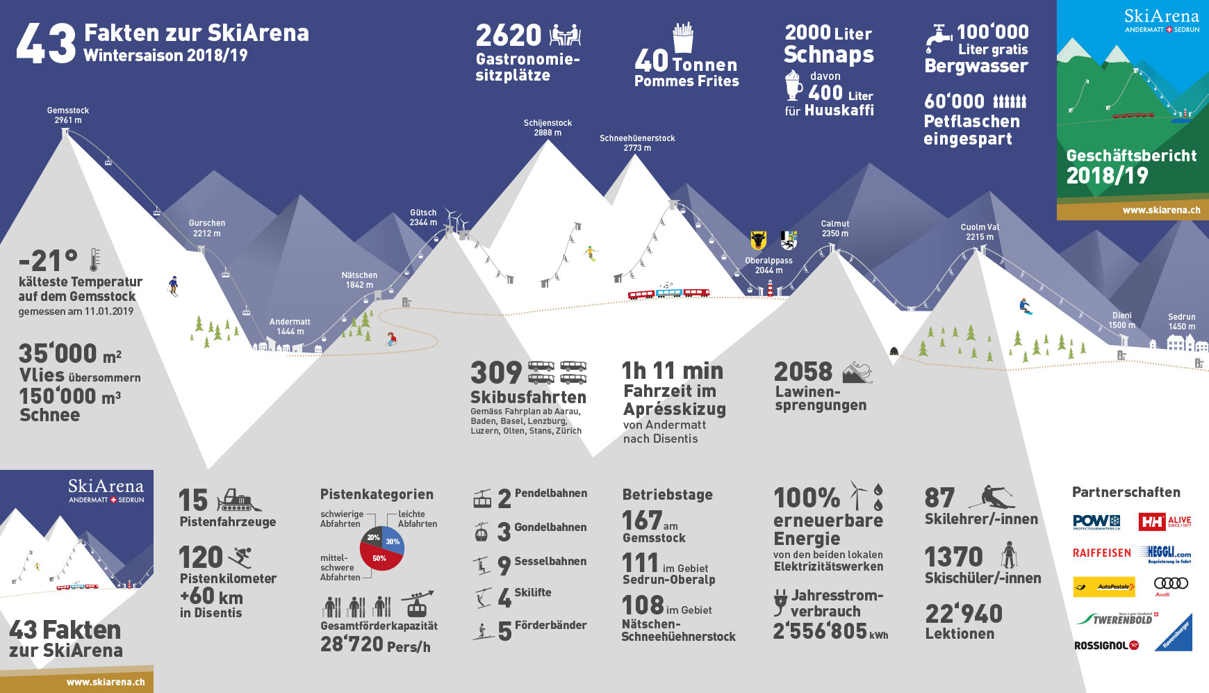 Das Vorhaben unseres Kunden war es, den Geschäftsbericht für einmal etwas ungewohnt zu verpacken. Die Idee, wichtige Kennzahlen in einem gefalteten Taschenformat abzubilden, stiess bei uns sofort auf Begeisterung. So illustrierten wir als erstes die Bergwelt im Hintergrund und erarbeiteten dann die Infografiken. Das Titelbild des Pocketfolders fügt sich in die ergänzenden Drucksachen wie Finanzbericht bzw. Einladung zu GV ein.